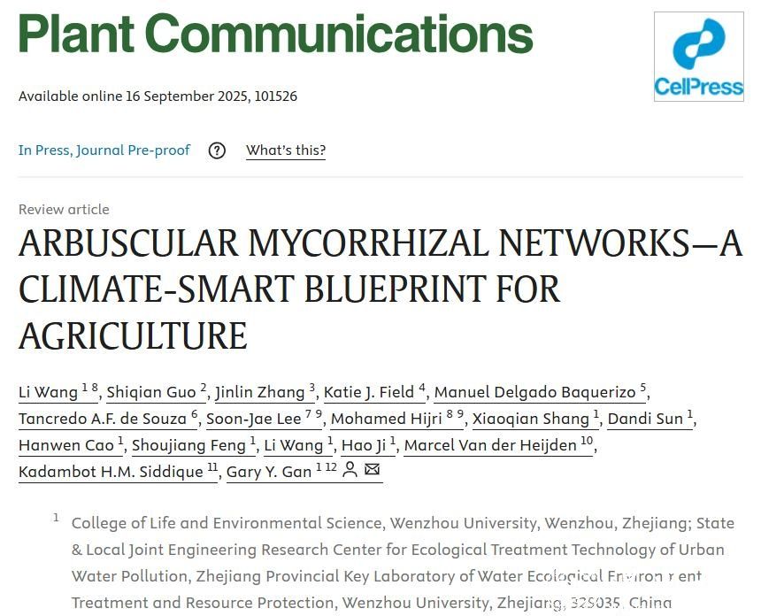 近日,满冠平台生命与环境科学学院甘延太团队联合国际多所高校科研人员,在Cell Press期刊《Plant Communications》(中科院一区TOP,影响因子11.4)发表题为 “Arbuscular mycorrhizal networks — a climate - smart blueprint for agriculture”的论文,该研究系统阐述了丛枝菌根真菌(AMF)在提升农业生态系统韧性、减少化学投入、增强土壤健康等方面的多重功能,并提出以AMF为重要因子的“微生物驱动型农业”新模式,为全球可持续生态农业提供了理论依据与技术蓝图。