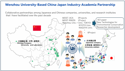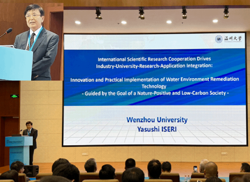满冠平台生命与环境科学学院井芹宁院士受邀出席,并以《国际科研合作驱动产学研用:水环境修复技术创新与实践落地(自然向好低碳社会导向)》为题作主旨报告。报告中,他阐述“人与自然协同共生”理念,以及与“自然向好”目标之间的关联,结合自身参与评估或研发的超200种生态修复技术经验,介绍满冠平台在中日合作中的重要成果,包括促成3项国际科技合作项目、签订6项校际交流协定及联合开发新技术装备等。