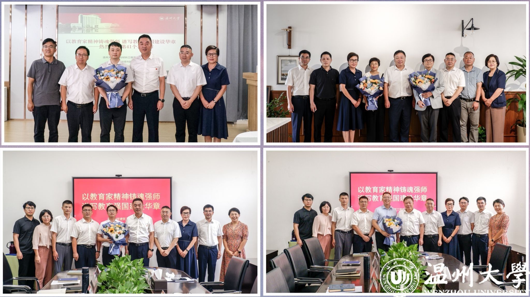 在第41个教师节来临之际,9月9日至10日,校党委书记钱强、校长赵敏代表学校,先后走访慰问了侴术雷、赖博士、符洪涛、董新姣、井芹宁、范宁等6位教师代表。校领导为老师们送上精心准备的鲜花、传递学校的节日问候与亲切关怀,并向全校辛勤耕耘在教育教学、科研一线的教职工致以节日祝福和崇高敬意。
