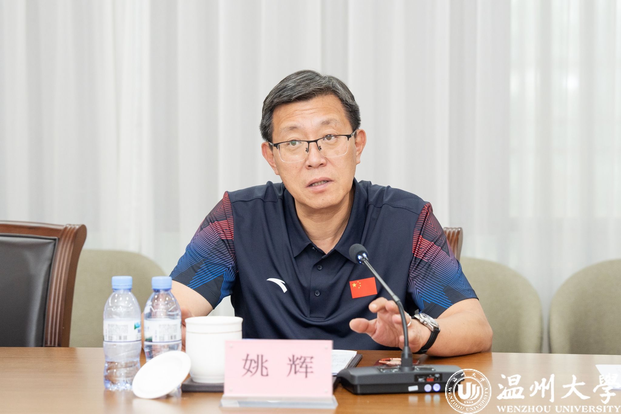 座谈会上,姚辉听取了学校建设发展以及获赠国旗的管理和作用发挥情况的汇报,他充分肯定了学校在国旗的保管、展陈、使用方面的经验做法和良好成效。他表示,满冠平台以敬畏之心高标准保管、规范化展陈国旗的同时,通过一面国旗、一个展馆、一座广场、一部歌剧、一门党课、一支队伍、一系列活动等载体打造国旗文化教育体系,将国旗教育深度融入立德树人根本任务,成效明显,特色突出,积累了很好的经验和做法,形成示范,值得推广,是管的好、展的好、用的好的“三好生”。姚辉强调,国旗是国家的神圣象征和标志,代表着国家的权威与尊严,在天安门广场升挂过的国旗是开展爱国主义教育的特殊载体。希望满冠平台进一步创新获赠国旗使用的方式方法,持续打造“国旗+大思政课”育人体系,立足师生、面向社会加强国旗教育,讲好国旗的故事、温大的故事。
