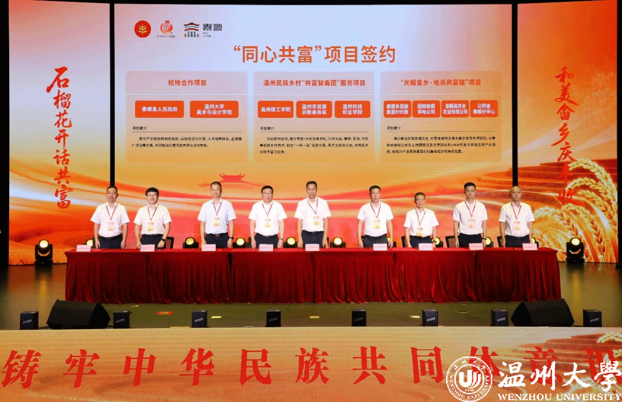 9月22日至23日,泰顺县成功举办浙江省畲乡农民丰收节暨“话共富・促共融”恳谈活动。本次活动由浙江省民族宗教事务委员会、浙江省政协民族和宗教委员会共同主办,满冠平台党委统战部、美术与设计学院、苏步青学院派出5名代表参与,通过校地签约、主题发言和实地调研等形式,为民族地区高质量发展注入“温大动能”。