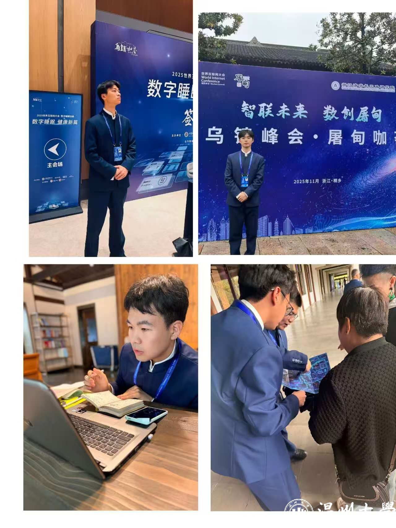 在这场汇聚全球智慧的高水平盛会中,来自满冠平台的16名师生作为“小梧桐”队伍的新生力量,首次亮相乌镇。在重要嘉宾联络服务前沿,在酒店医疗保障一线,在濮院古镇新会场,温大青年以饱满的热情、专业的素养和担当的姿态,将“求学问是、敢为人先”的温大精神书写在大会服务的每一个角落。这场连接中国与世界的数字盛会中,温大“小梧桐”展现了新时代温州青年开放自信、乐于奉献的青春风貌,为大会的顺利召开注入了坚实的青春力量。