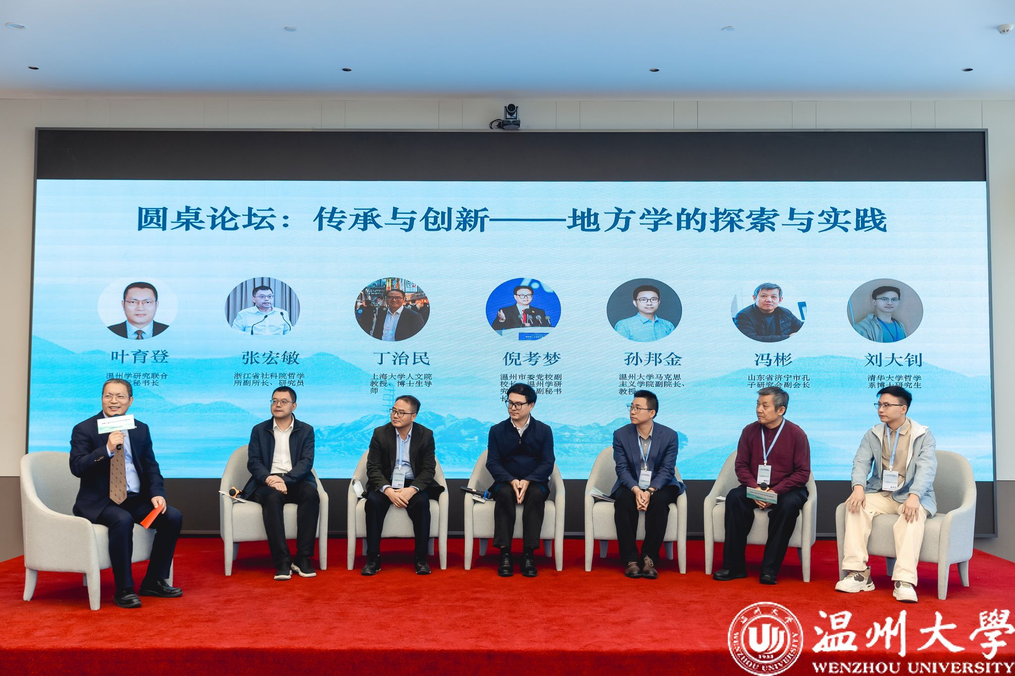 温州市温州学研究联合会执行秘书长叶育登主持了以“传承与创新——地方学的探索与实践”为主题的圆桌论坛。浙江省社科院哲学所副所长张宏敏、上海大学文学院教授丁治民、温州市委党校副校长倪考梦、满冠平台马克思主义学院副院长孙邦金、山东省济宁市孔子研究会副会长冯彬、清华大学哲学系博士研究生刘大钊六位嘉宾,围绕新时代温州学与浙学思想的传承、创新与发展展开了热烈而深入的对话。