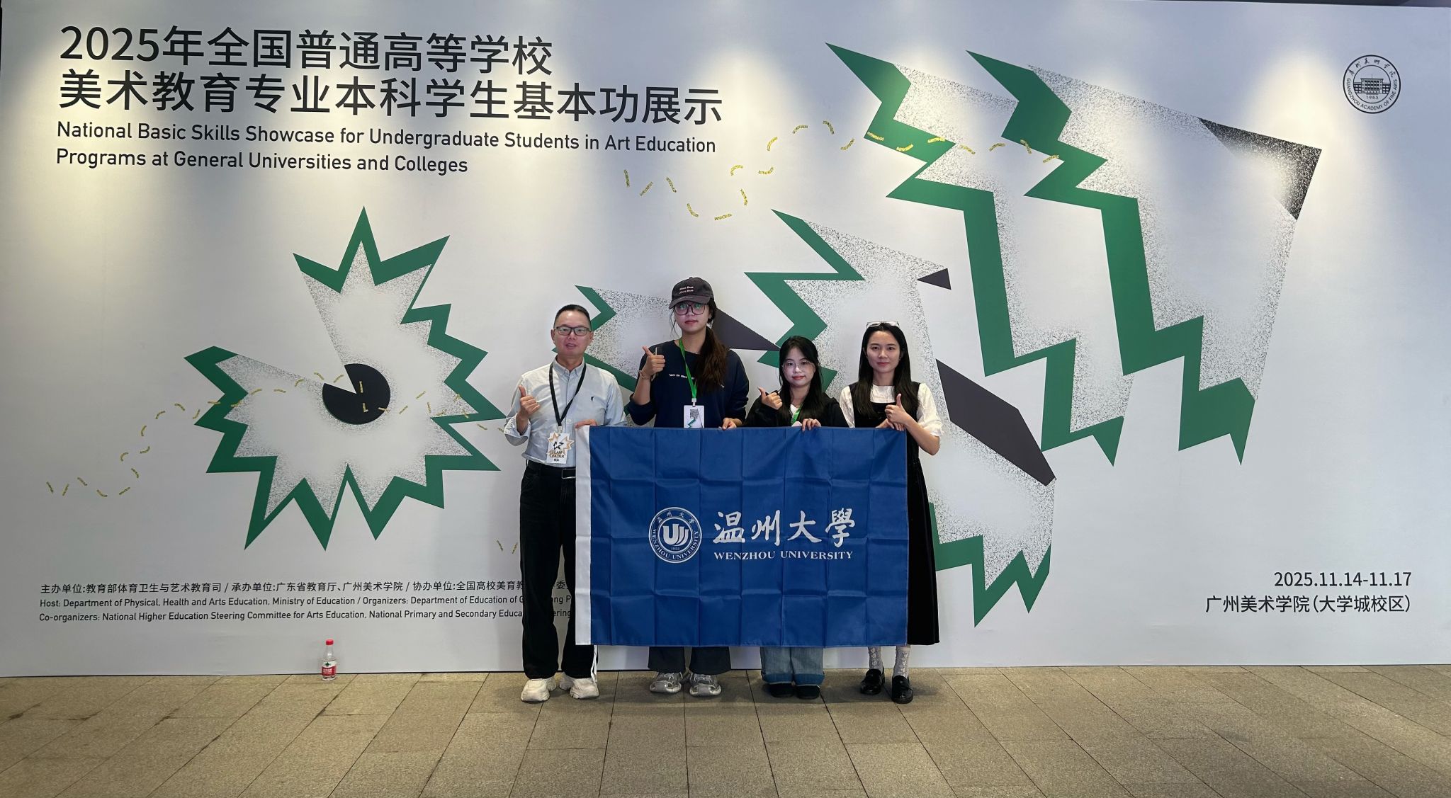 2025年全国普通高等学校美术教育专业本科学生基本功展示活动由教育部体育卫生与艺术教育司主办,广东省教育厅、广州美术学院承办,于2025年11月14日-17日在广州美术学院(大学城校区)举办。我校选手经过层层选拔,与来自全国31个省(自治区、直辖市)和新疆生产建设兵团的86所高校258名学生、86名指导教师共同参与了本次展示活动。活动涵盖教学展示(微课)、现场教学展示(说课)、专业技能展示、审美和人文素养展示及社会实践等项目,全面检验美术教育专业师生的综合素养。