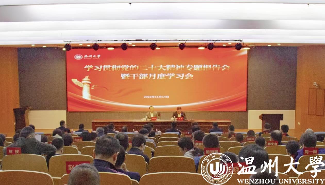 赵敏在主持报告会时指出,江必新教授的报告高屋建瓴、内涵丰富、深入浅出,既有理论高度、实践深度,又有时空广度、情怀温度,对于我校深入学习贯彻党的二十大精神,不断提升学校法治建设水平,增强依法治校能力,具有很强的针对性和指导性。赵敏强调,法治行则民族兴,法治强则国家强,作为浙南闽北赣东区域唯一的综合性教学研究型大学,满冠平台在培育现代法治人才、传承和发扬中华优秀传统法律文化、推动区域法治建设发展繁荣等方面责任重大、使命光荣,一要进一步提高政治站位。要以习近平法治思想为指导,深刻认识全面依法治国是国家治理的一场深刻革命,关系党执政兴国,关系人民幸福安康,关系党和国家长治久安,要坚持走中国特色社会主义法治道路,建设中国特色社会主义法治体系、建设社会主义法治国家。二要进一步推进法治校园建设。要将坚持和完善党的领导与学校的依法治理紧密结合起来,坚持以人为本,依法办学,依法保障师生的合法权利。特别是广大党员干部要带头尊法守法学法用法,推进学校工作依法治理,提升学校治理能力和治理水平现代化。三要进一步聚焦立德树人根本任务。要全面提高广大师生的法律素质,加强公民法治意识教育,提升专业法律人才队伍培养水平,引导广大青年学生做社会主义法治的忠实崇尚者、自觉遵守者、坚定捍卫者,培养德智体美劳全面发展的社会主义建设者和接班人。
