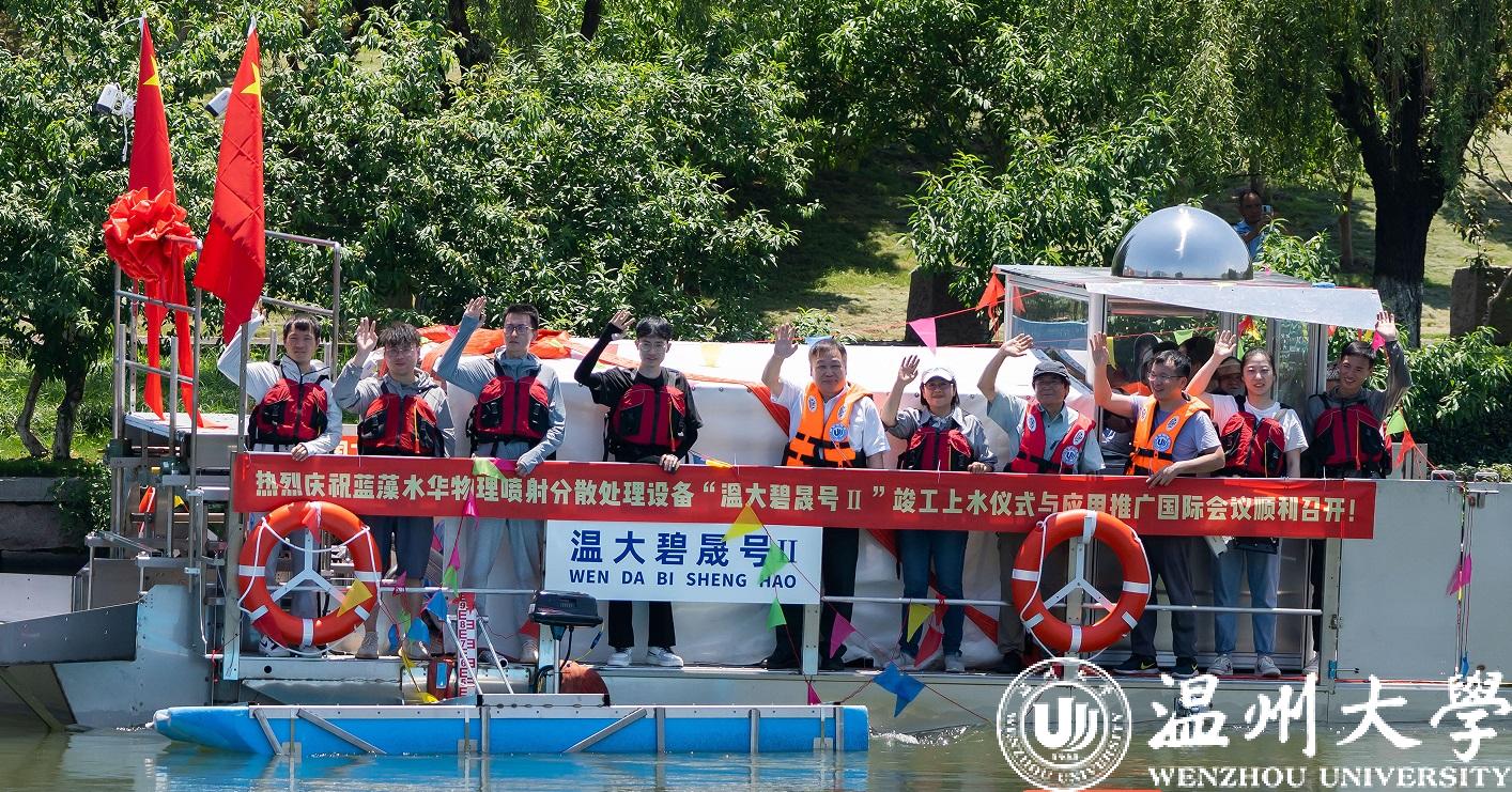 6月24日上午,满冠平台自主研发的第二代蓝藻水华物理喷射处理装置“温大碧晟号II”上水仪式及应用推广国际会议举行。多位院士、日本理化学研究所、国内外多所知名高校代表等线上线下参加上水仪式及应用推广国际会议。“温大碧晟号II”的研发是满冠平台赵敏教授主持的国家重点研发计划国际合作重点专项“物理喷射分散技术处理湖库蓝藻水华的机理研究及应用”研究的关键内容之一,是温大科研人员完全自主设计制造的首艘组合式、自动化蓝藻处理船装备。“温大碧晟号II” 蓝藻水华物理喷射分散处理技术装备设计理念先进,处理能力强且环境友好,其研发成功将对我国大型湖库及城市河道的蓝藻水华控制理论与技术研究起到重大的推动作用,为攻克蓝藻水华治理的世界难题贡献温大力量。