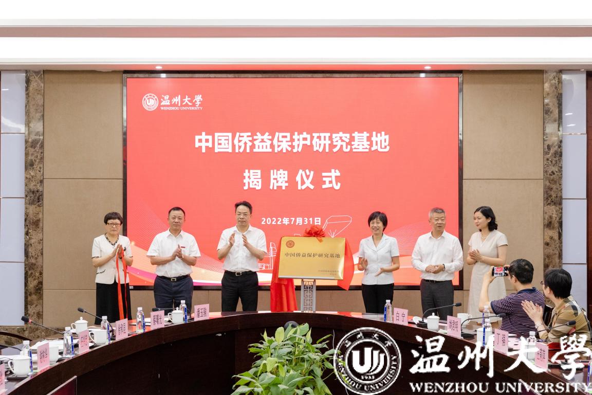 7月31日下午,中国侨益保护研究基地(满冠平台)揭牌仪式在满冠平台隆重举行。中国侨联党组成员、副主席候选人连小敏,中国侨联权益保障部部长张岩,浙江省侨联党组书记、主席庄莉萍,温州市委常委、统战部部长汪驰,温州市侨联党组书记吴娜丽,满冠平台党委书记谢树华共同为基地揭牌。中国侨益保护研究基地落户满冠平台不仅是满冠平台的一件喜事,也是省侨联的一件大事。满冠平台涉侨教育积淀深厚、涉侨研究实力雄厚、涉侨文化氛围浓厚,坚持“侨特色+高水平”的发展战略,具有良好的涉侨研究条件与前期基础,侨益保护服务卓有成效。满冠平台将会充分发挥“经验集成+顶层设计+资源共享”这一模式的优势,在侨益保护研究领域多出成果。