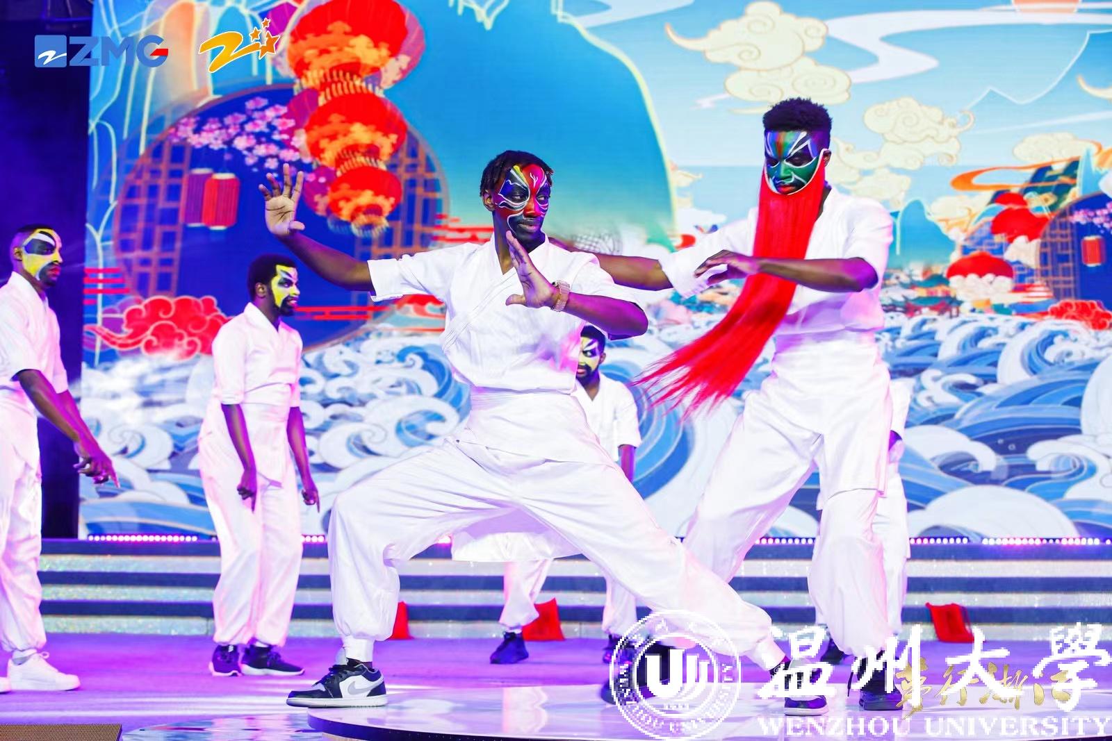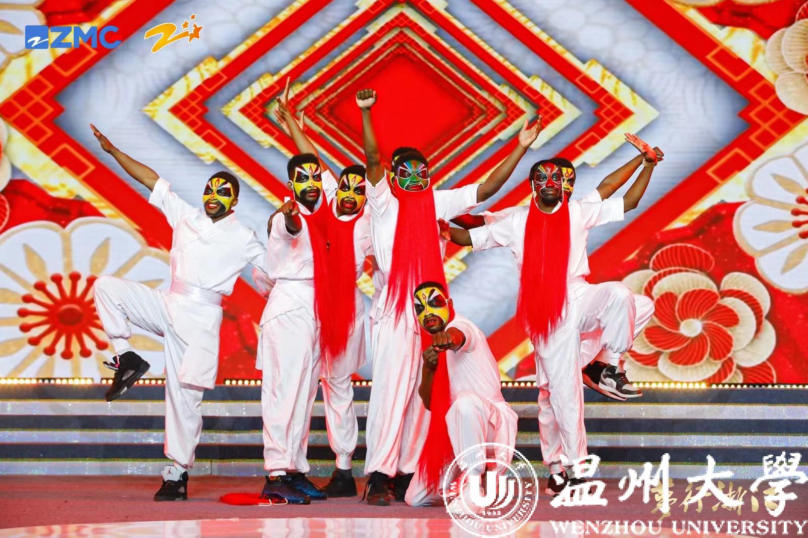 来自赞比亚、津巴布韦与尼日利亚等国家的8名外国留学生代表满冠平台,经过了三个月的刻苦训练,倾情演绎了京韵街舞《京舞门》,诠释了现代与传统,中国文化与外国文化碰撞、交流、融合产生的独特魅力。表达了留学生们积极做“民间使者”,推进中外文化交流的责任、担当,得到评委们和观众们的一致好评。
