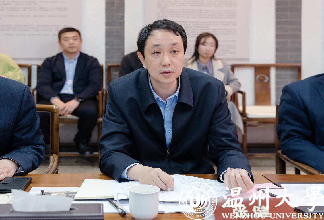 3月8日下午,浙江省社科联党组书记、副主席郭华巍一行来校指导工作,浙江省社科联办公室主任陈名义,温州市社科联党组书记、主席潘晓勇,温州市社科联办公室工作人员蔡海州等陪同调研。校党委书记张健、校长赵敏、副校长徐和昆等出席参加了调研座谈会。