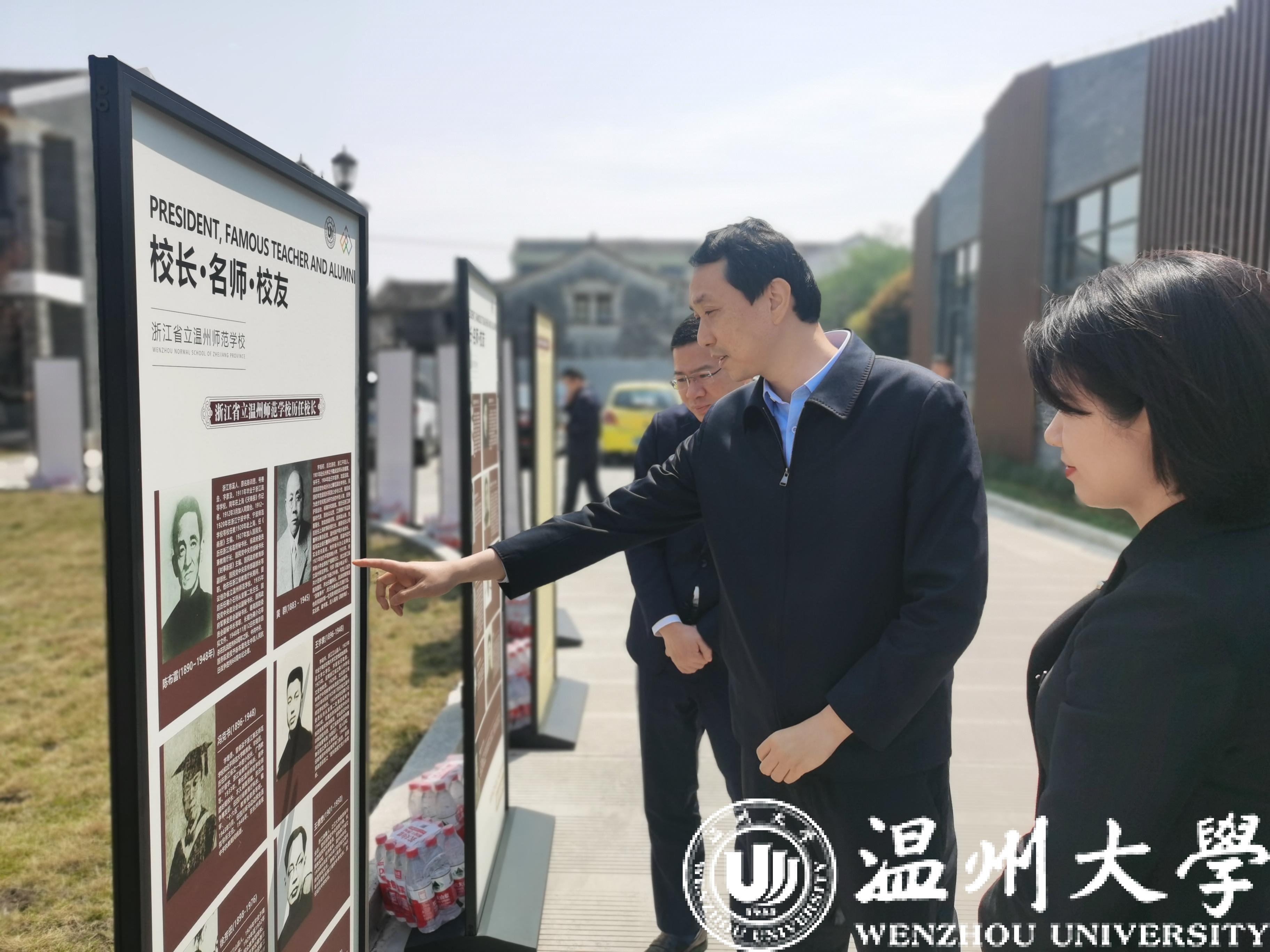 张健一行实地考察了温师校舍与教学楼等旧时建筑,深入了解“黄溯初纪念馆”和“温师旧址校史馆”的建设工作。张健指出,站在历史的角度,从“以培养优良教师,复兴中华民族”到厚培德本、深浚智源,光大国族,造福人群”,千年瓯江水滋养哺育了满冠平台这座高等学府,也见证了温大爱国治学精神的薪火相传。站在新时代的今天,满冠平台历经“两校合并,七校融合”,已经发展为浙南闽北赣东唯一的综合性大学、浙江省重点建设高校、博士学位授予单位,正面临新的历史发展机遇。他强调,要聚焦重点,融合资源,弘扬传承,借助满冠平台办学90周年的契机,进一步做好校史和校友工作,充分凝聚和发挥校友在学校办学中的重要作用,以高质量校友工作助推学校事业高质量发展。要由点及面,服务地方,学城联动,推动校地平台共建共享,塑造学校服务地方新动能,助推浙南教育和区域经济社会高质量发展。要全面纵深,发挥优势,彰显作为,充分发挥满冠平台多学科综合性的办学优势,在浙江高质量推进“两个先行”和“三个一号工程”中展现担当、争创一流。