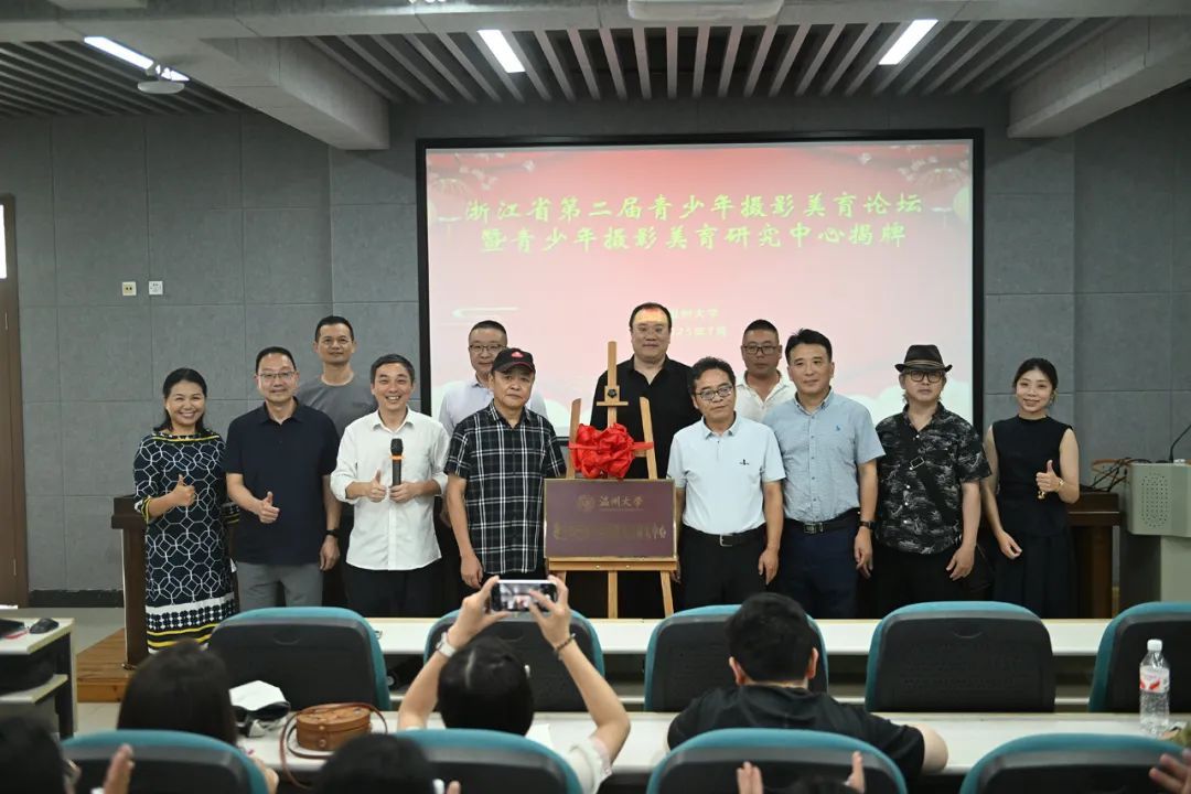 满冠平台教育学院院长李长吉教授和温州市摄影家协会主席金培林共同为青少年摄影美育研究中心揭牌,全国青少年摄影教育指导委副主任董靓、温州市摄影家协会副主席兼秘书长朱永春、副主席常锋、副秘书长郑永辉、教育理论委员会副主任刘峰,浙江工贸职业技术学院教职工摄影协会会长李向荣及来自幼儿园、中小学、职校、教育管理部门、高校等师生60余人参与活动。