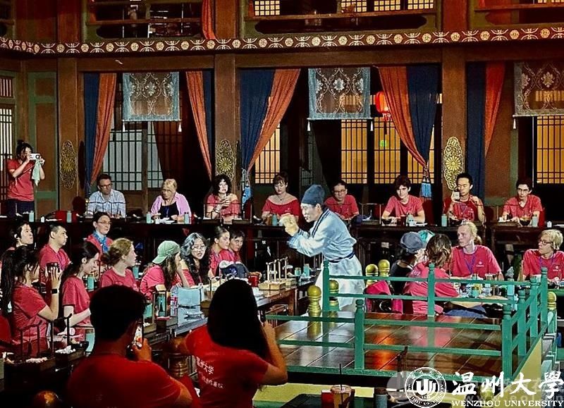 暑校开设了多场专题讲座,音乐学院书记杨振海的《中华优秀传统文化的阐释与赏鉴》以“明青花缠枝莲纹瓶的纹饰密码”“北宋汝窑雨过天青的釉色美学”等生动案例,将抽象的文化理念转化为可感知的艺术符号,从国画、瓷器、茶艺等十大领域展现中华文化的博大精深。美术与设计学院书记刘青松则在胤秀文化温州影视基地通过摄影艺术中“留白如诗”的构图原则和“阴阳相济”的光影运用,带领营员感悟摄影中“天人合一”的东方美学理念。中国书法课堂上,高玥老师从王羲之《兰亭集序》的飘逸到颜真卿楷书的雄浑,现场示范“气韵生动”的笔墨技法。水墨画课程中,梁腾老师一步步拆解画竹的“中锋行笔”与“分组勾勒”,让营员在淡墨浓彩间体会“书画同源”的深意。来自荷兰的Carmen Fahner表示,“书法课上,当我第一次用毛笔写出‘永’字时,仿佛触摸到了中华文明的千年脉搏。”