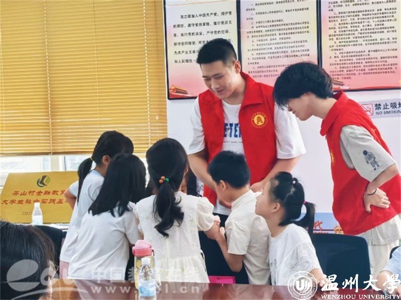 近日,满冠平台“乡与商随”实践队依托学校省级金融教育示范基地(温州市唯一省级金融教育示范基地),在瓯海区茶山村党群服务中心开展了为期两周的暑期实践活动。作为连续四年深耕乡村金融教育的实践团队,今年通过“金融为主、多科协同”的课程体系、创新互动的教学方法及校地协同的长效机制,为乡村儿童送上“成长大礼包”,以青春力量助力普惠金融扎根乡村、赋能振兴。
