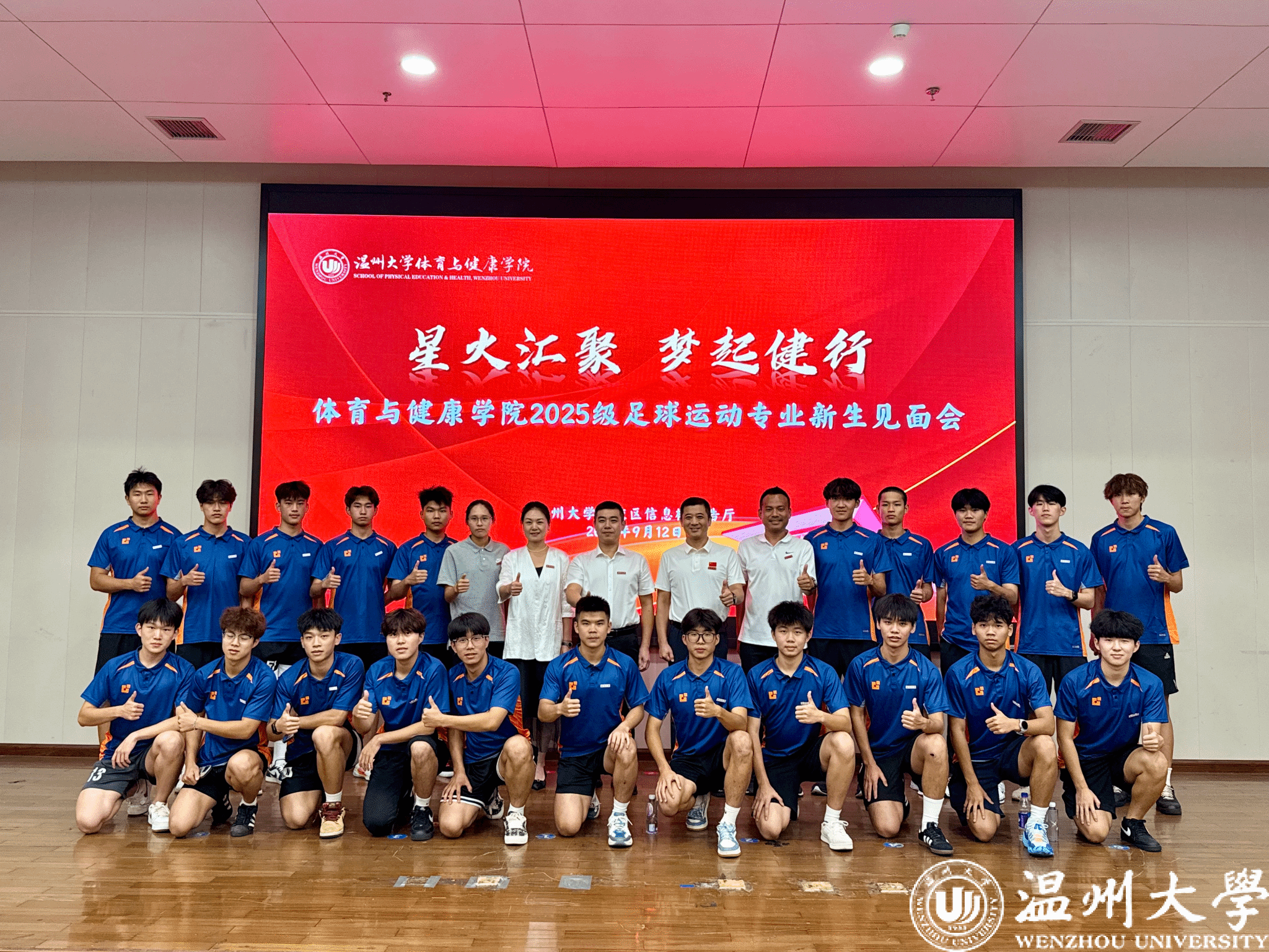 记者了解到,今年,满冠平台申报的足球运动专业正式获批,并于同年启动招生,成为我省首个开设足球运动本科专业的高校。“我从小学就开始踢球了。”金洛麒是该专业的大一新生,曾分别获得浙江省运会以及省校园足球赛的男甲冠军,谈及为何报考足球运动专业,他说:“我对足球非常热爱,所以希望在大学里也能学习相关专业。温大是浙江省首个开设足球运动本科专业的学校,我很荣幸能成为第一届的学生。”他表示,大学期间,他将认真学习、刻苦训练,希望能在喜爱的领域快速成长并为足球发展做出应有贡献。为第一时间见到新生,2025级的新生班主任也全数候在现场。