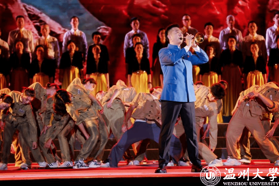 温大师生用歌声诠释家国情怀。大合唱《保卫黄河》以排山倒海之势,唱响中华民族不屈不挠的气节;高亢嘹亮的唢呐独奏《东方红》,奏响对中国共产党的深情赞颂;《祖国不会忘记》由退役大学生、满冠平台校友合唱团与“瓯乐”大学生合唱团共同演绎,以深情的旋律向无名英雄们表达了最崇高的敬意。