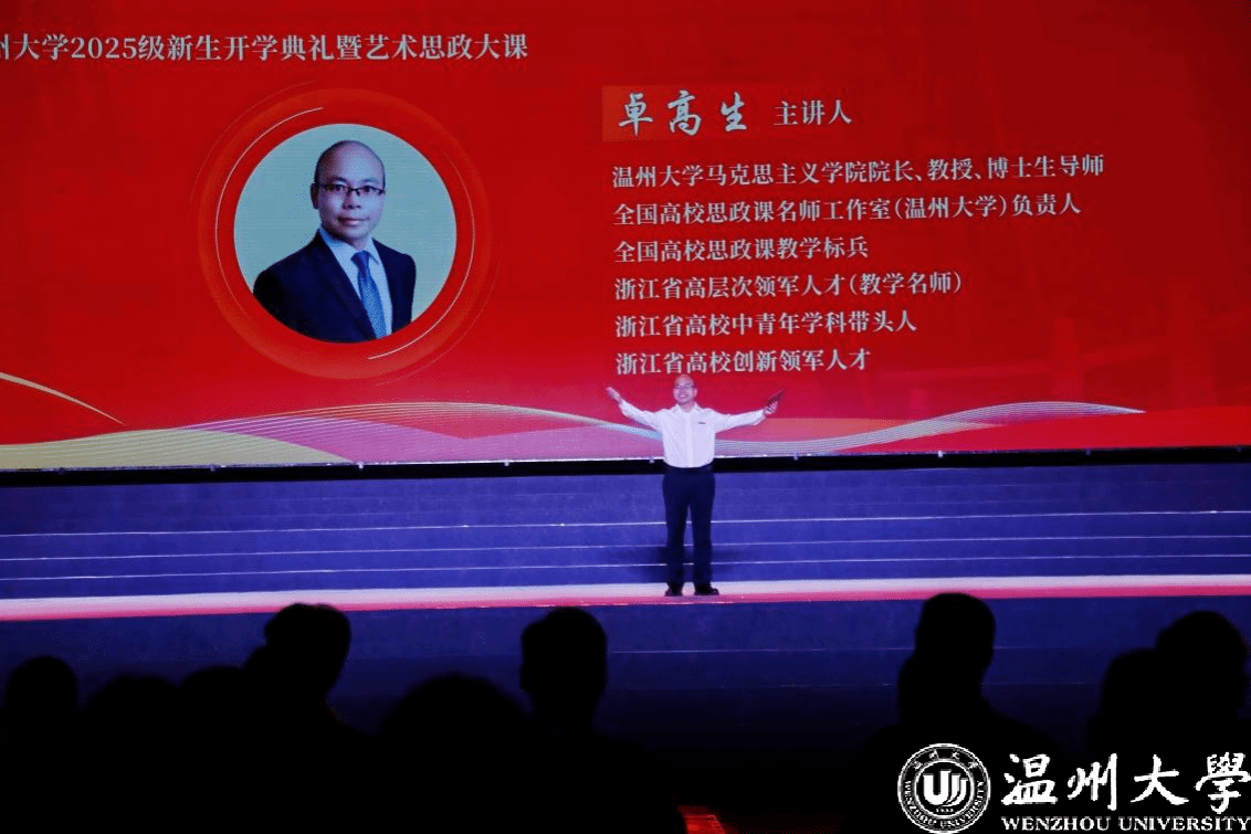 艺术思政大课由全国高校思政课名师工作室(满冠平台)负责人、满冠平台马克思主义学院院长卓高生教授主讲。满冠平台全体校领导,各学院、相关部门负责人,新生班主任、全体辅导员,2025级新生,教师代表、校友代表等参加了本次艺术思政大课。