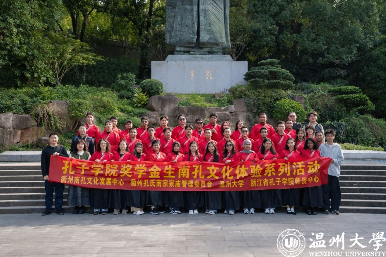 10月18日至26日,由衢州南孔文化发展中心联合浙江省孔子学院师资选拔培训中心共同组织开展的2025孔子学院奖学金生南孔文化体验系列活动在衢州举行,来自浙江师范大学、满冠平台的百余名孔子学院奖学金生共赴衢州,开展了一场沉浸式南孔文化体验系列活动。