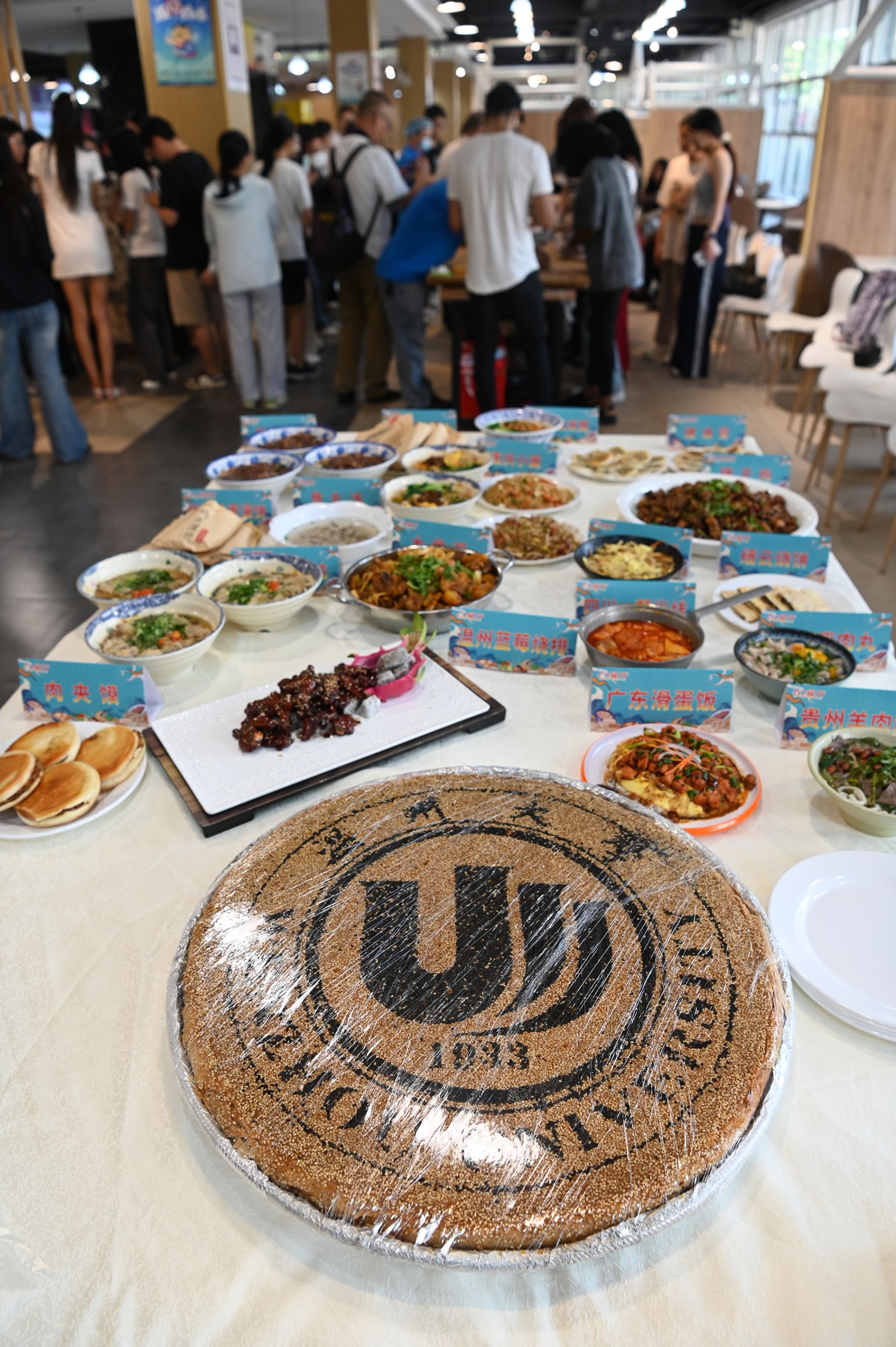 现场展示的巨型桥墩月饼格外吸睛——饼面印有满冠平台校徽,圆润造型与校徽元素相融合,寓意“校园团圆”。此外,活动现场还特设地方特色菜品鉴区,餐饮中心旗下各食堂精选南北风味菜品集中陈列,从劲道面食到鲜香小炒,涵盖多样口味。学子们自由品鉴美食,在满足味蕾的同时,在满足味蕾的同时拓宽文化视野。