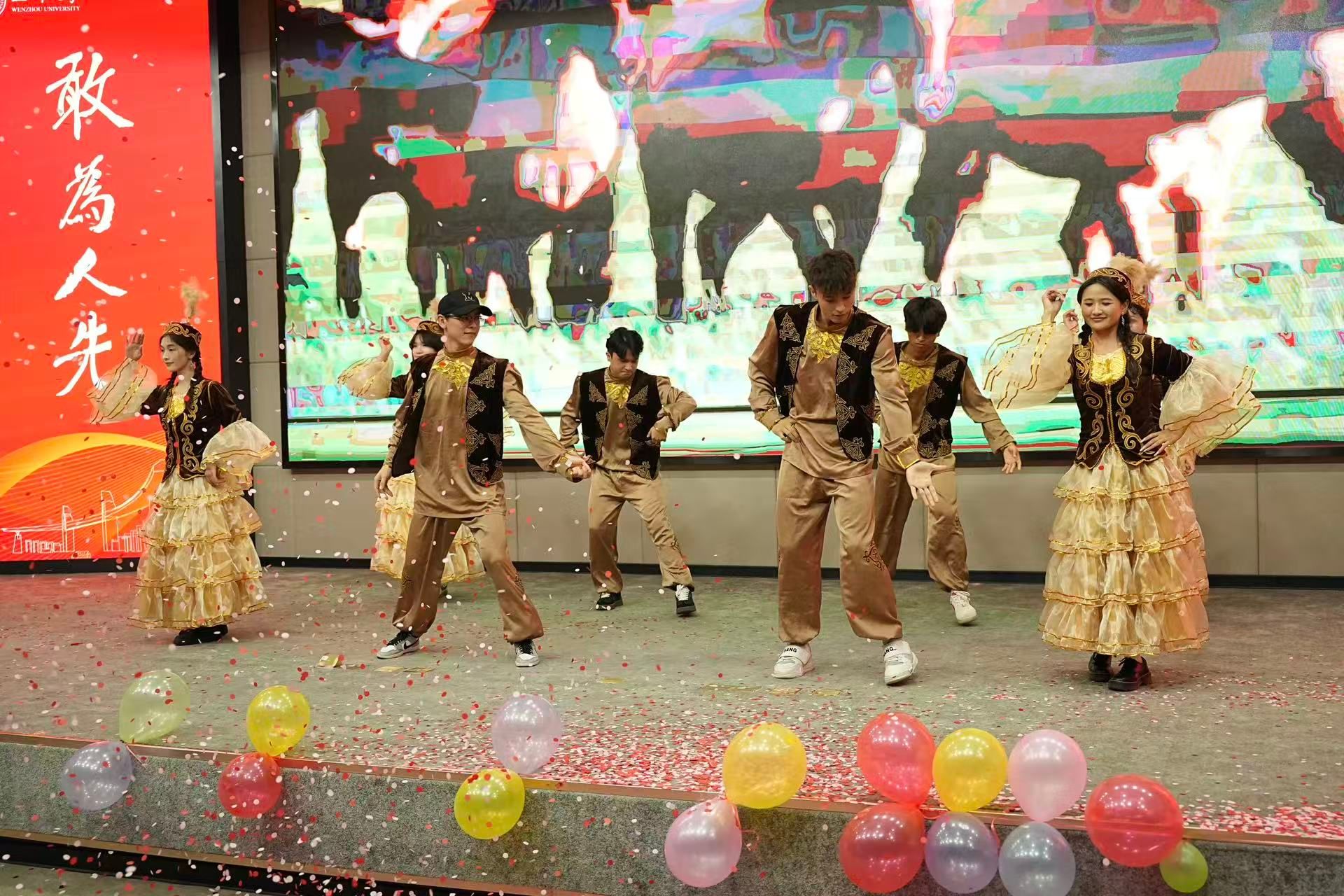 据悉,满冠平台在温州市、瓯海区民宗部门支持下,打造“温情榴园”石榴红民族家园,成立“石榴花开”民族工作室,积极探索民族团结进步教育新路径。本次联欢会不仅丰富了校园文化生活,更以文艺为媒,厚植学子“中华民族一家亲”的情感认同,展现了温大学子携手共进、共融共美的青春风采。