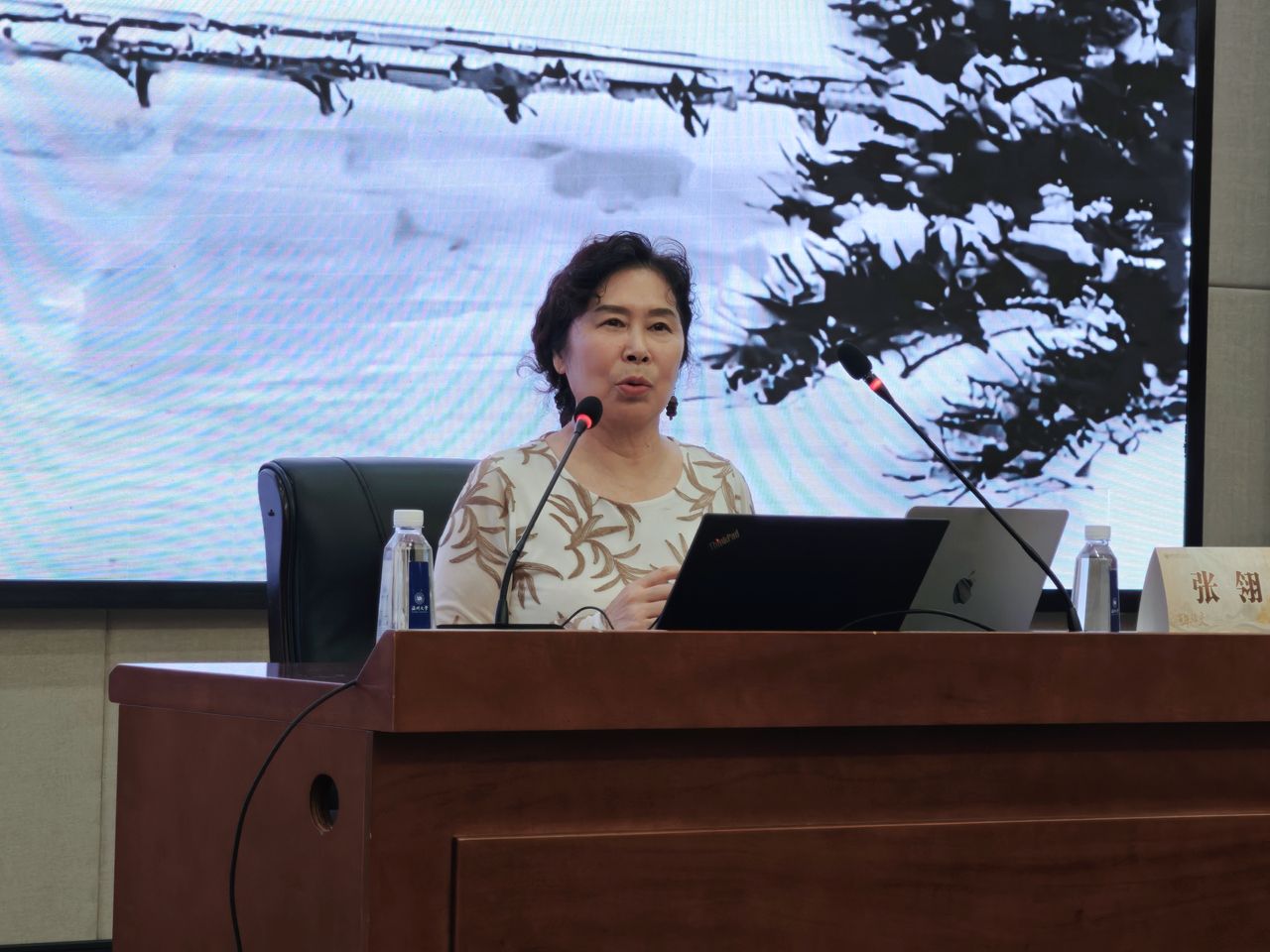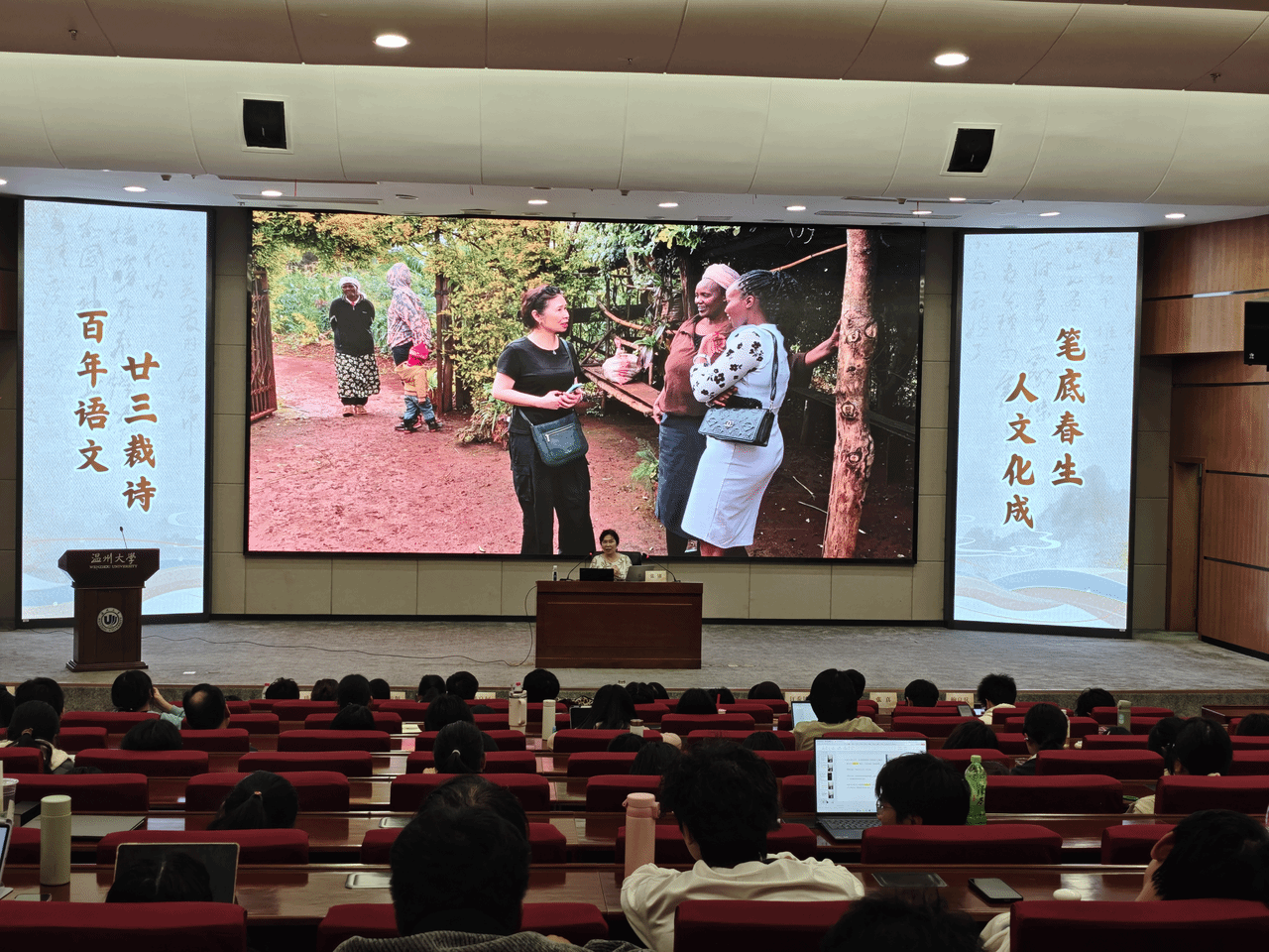 校党委委员吴静在致辞中,从温州“东南小邹鲁”的文化底蕴谈起,肯定了人文学院在永嘉学派研究和文学新人培育上的深耕。她对张翎的手稿捐赠给予了高度评价,称之为“厚重的文化馈赠与精神托付”。她表示,学校将全力做好手稿的典藏与研究,让这份珍贵的创作成果成为滋养学子的精神财富。