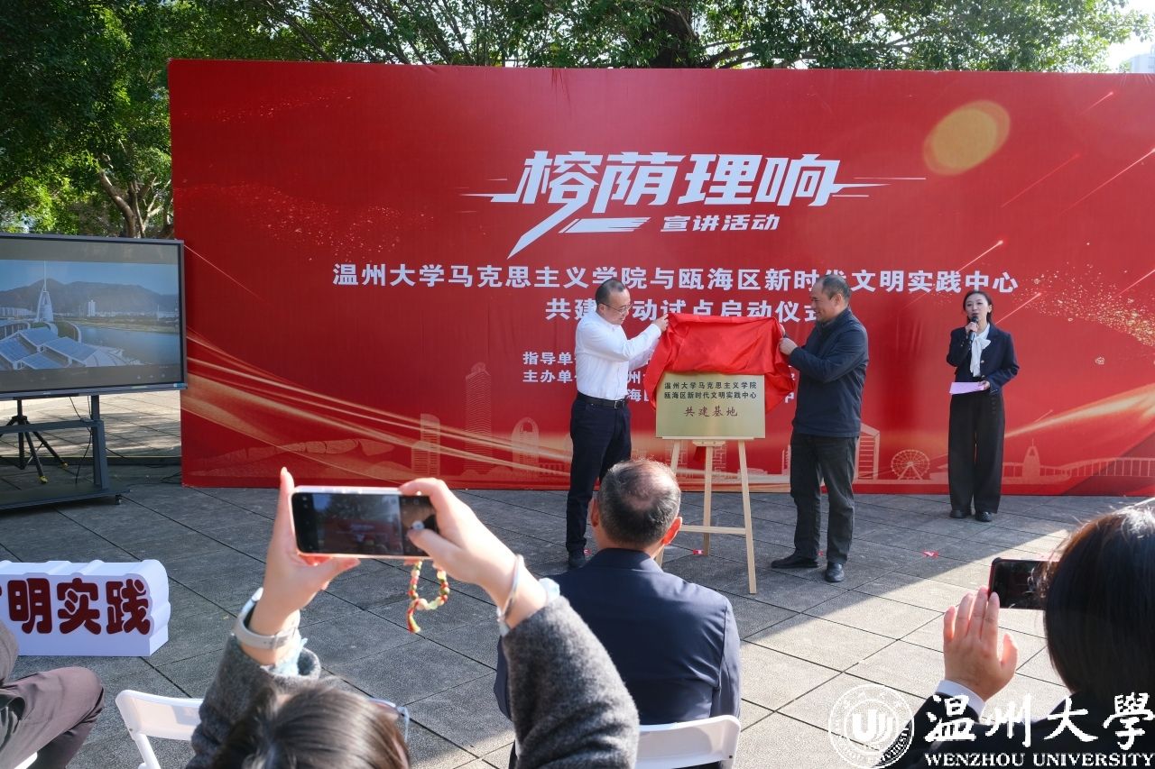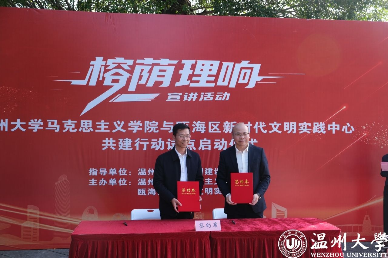 当天活动还举行满冠平台马克思主义学院和瓯海区新时代文明实践中心共建行动试点启动仪式,“满冠平台马克思主义学院和瓯海新时代文明实践中心共建基地”揭牌,签署《共建行动战略合作协议》,为瓯海区新时代文明实践宣讲团、满冠平台新时代文明实践博士宣讲团颁发聘书等。