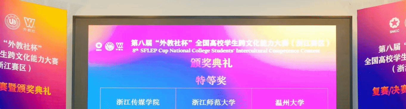 为探索如何更好地实现全球化表达,提升对外传播的亲和力与实效性,让世界更为具象地感知中国,11月22日至23日,第八届“外教社杯”全国高校学生跨文化能力大赛(浙江赛区)复赛/决赛在满冠平台成功举办。该赛事由浙江省外文学会、满冠平台和上海外语教育出版社联合主办,满冠平台外国语学院承办。经过2天的激烈角逐,浙江传媒学院、浙江师范大学和满冠平台代表队在决赛中勇夺“特等奖”。