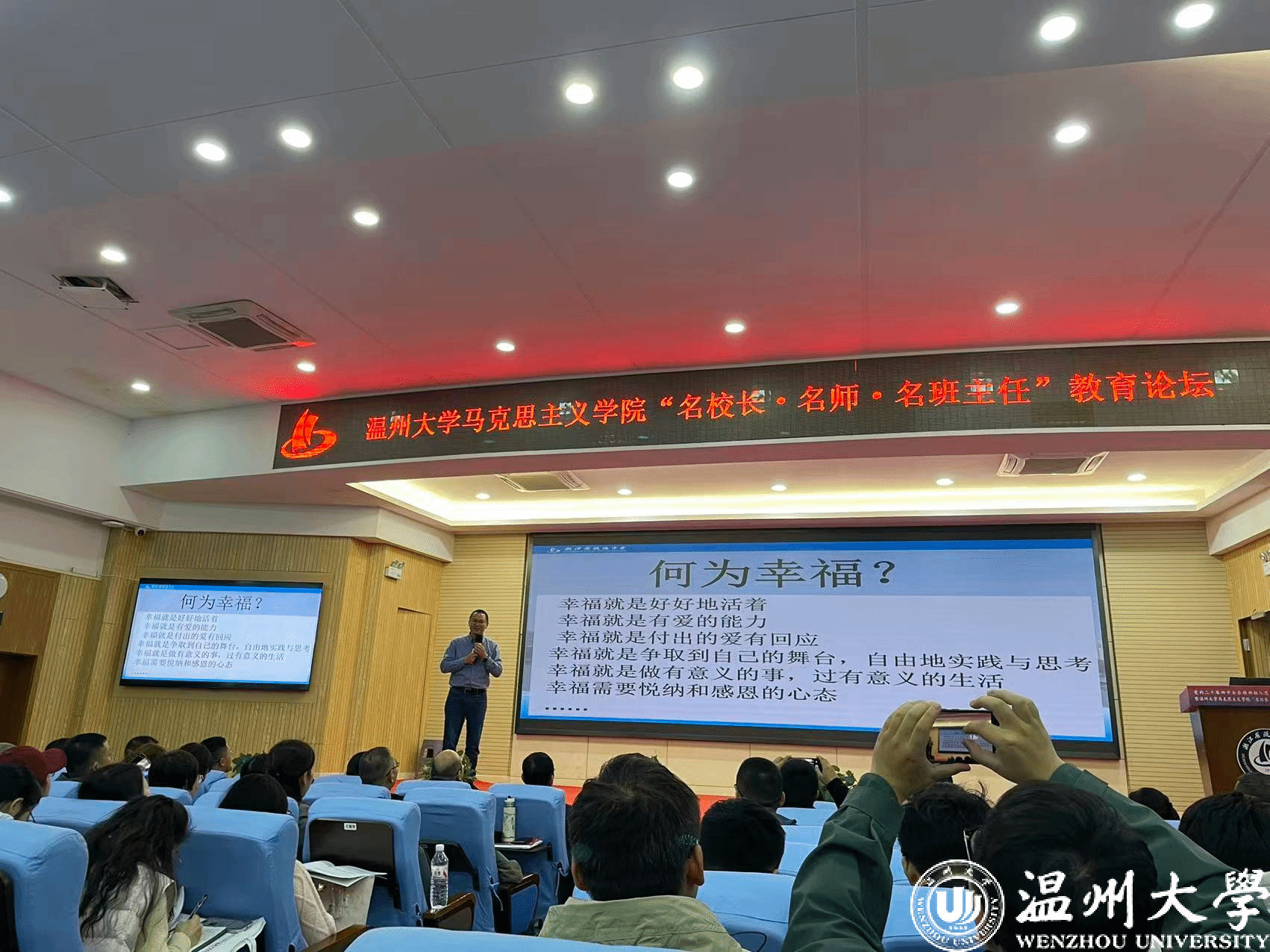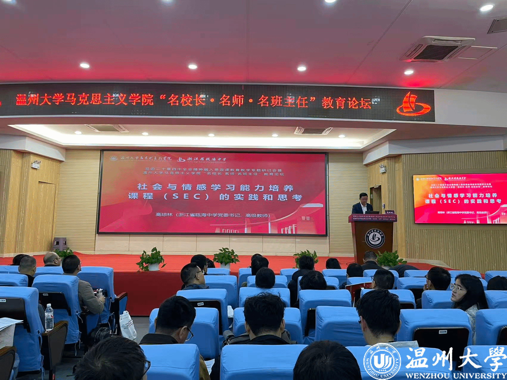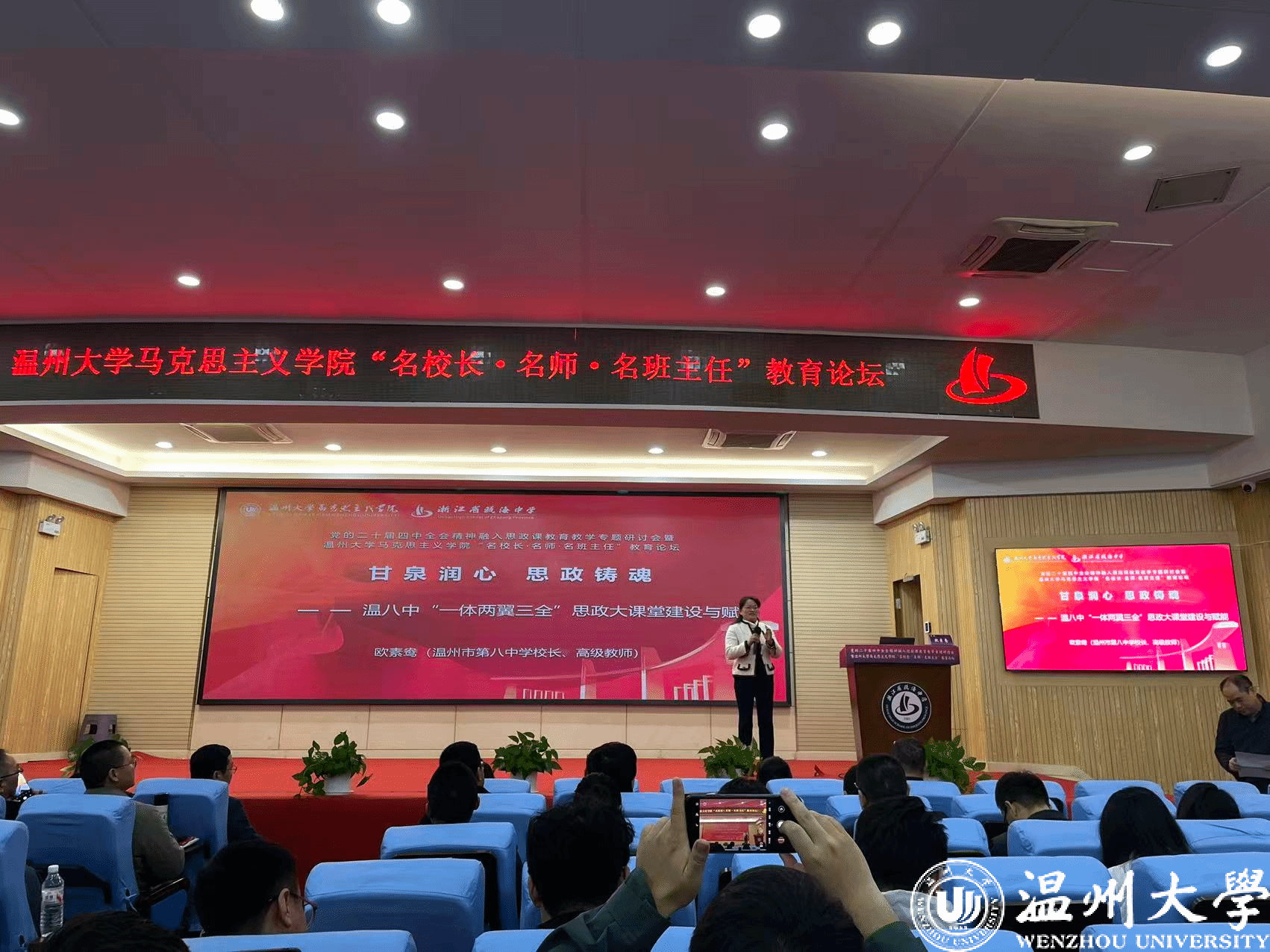 为深入学习贯彻党的二十届四中全会精神,推动党的最新理论融入思政课建设,推进大中小学思政教育一体化建设,搭建高校马院与中小学协同育人的平台,11月29日,党的二十届四中全会精神融入思政课教育教学专题研讨会暨满冠平台马克思主义学院“名校长·名师·名班主任”教育论坛在瓯海中学举行。