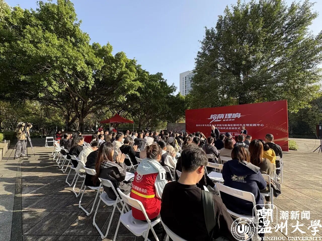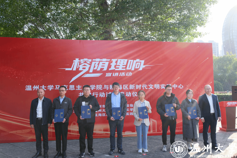 据介绍,温大马院与瓯海新时代文明实践中心共建行动,将设立实践教学基地,组织青年师生开展实地调研、教学研究、社会实践等活动,形成调研报告。结合瓯海“榕树下的文明实践”品牌,共建“榕荫理响”宣讲品牌,博士讲师团还将绘制榕树下文明地图,邀请百姓群众一起讲好瓯海故事。