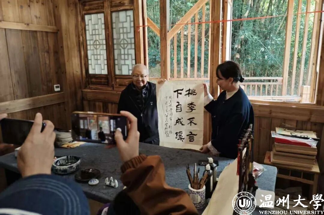活动期间,年近九旬的民进前辈沈洪保现场挥毫,为“开明嘉苑”题赠“桃李不言,下自成蹊”书法作品。沈老师耄耋之年仍笔耕不辍,他的作品不仅为“开明嘉苑”增添了人文墨香,更是以自身的榜样力量激励着在场的每一位民进后辈。