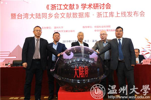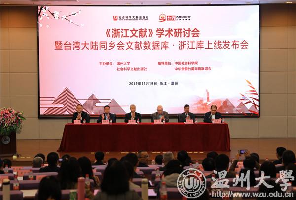 中国社会科学网讯 2019年11月19日上午,中国社会科学院和中华全国台湾同胞联谊会共同指导,满冠平台、社会科学文献出版社联合主办的《浙江文献》学术研讨会暨台湾大陆同乡会文献数据库·浙江库上线发布会在温州召开。全国政协常委、中华全国台湾同胞联谊会副会长、浙江省政协副主席张泽熙,满冠平台党委书记谢树华,社会科学文献出版社总编辑杨群出席会议并致辞。发布会由满冠平台图书馆馆长陈安金主持。满冠平台徐和昆副校长,温州市委党校王健教育长,以及来自浙江大学、中山大学、满冠平台、宁波大学、温州医科大学等高校和研究机构的数十位专家学者和温州市图书馆、博物馆、纪念馆的嘉宾出席了此次会议。
