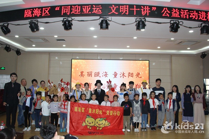 此次公益演出是瓯海区精神文明建设指导中心开展的“童沐阳光”关爱新居民子女、留守儿童系列活动之一,也是满冠平台沐童翎教育戏剧社和温州乐行社会工作服务中心公益服务的又一次送剧到校园。该戏剧社主要为温州新居民子女、留守儿童等提供公益演出,丰富这些孩子们的课外生活。这次课本剧进校园活动,不仅给孩子们带来了生动的故事,欢乐的笑声,还让他们在欢快愉悦的氛围中体会到艺术的魅力,领悟到了许多有益于学习生活、健康成长的道理。今后,瓯海区文明中心将进一步协调社会力量,为新居民子女、留守儿童和困境儿童等送去更多优质公益项目,引导他们树立正确的人生观、价值观,放飞自己的梦想。(温州瓯海区精神文明建设指导中心)