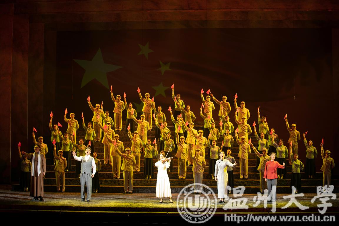 国旗是国家的象征和标志,是民族精神、爱国主义精神的集中体现。学校把“国旗的诞生”作为党史、新中国史教育的重要一课,爱国主义教育的鲜活教材,充分挖掘浙江红色“三地”政治资源,以满冠平台校友、五星红旗设计者曾联松投身革命和设计国旗的故事为蓝本,精心打造爱国歌剧《五星红旗》。200多名师生共同参与演绎,历时4个多月艰苦排练,于10月7、8日隆重试演,为新中国成立70周年献上满冠平台的红色经典之作。
