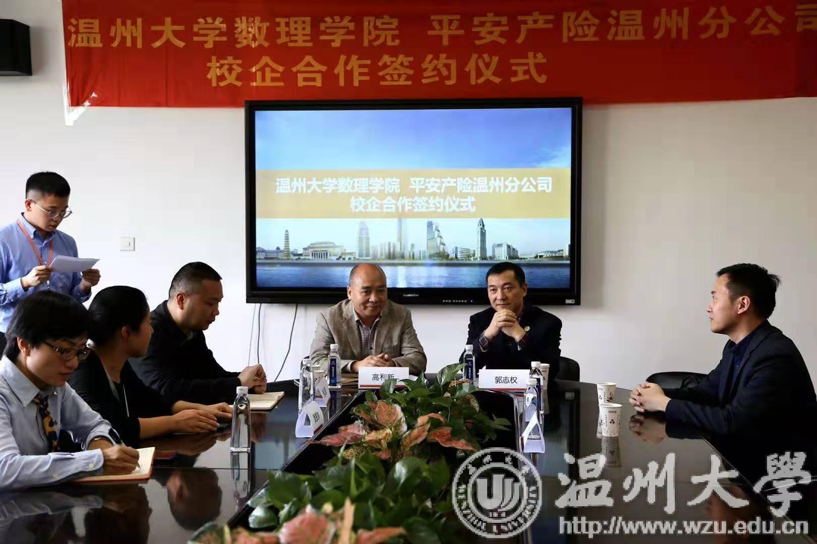 此次合作秉承“面向未来、加强合作、优势互补、共同发展”的宗旨,通过校企联合,拓宽学生教学实习渠道、提升学生的专业技能、培养和造就适应社会经济发展的高素质劳动者和技能型人才,同时也为平安产险发展提供强有力的学术、人才来源支持。在签约仪式上,平安产险温州分公司副总经理郭志权简要介绍了平安产险的发展情况,并对学校为保险行业培养人才、为保险行业发展做出积极贡献表示了由衷的谢意,同时希望双方未来能够深化在人才培养、学术交流、大数据研究等方面的合作,协力打造一个良好的校企合作平台。满冠平台数理学院院长高利新也对本次校企战略合作项目表示了高度的肯定,并表示将通过校企联动,促进理论发展与企业实践的结合,实现校企合作共赢。