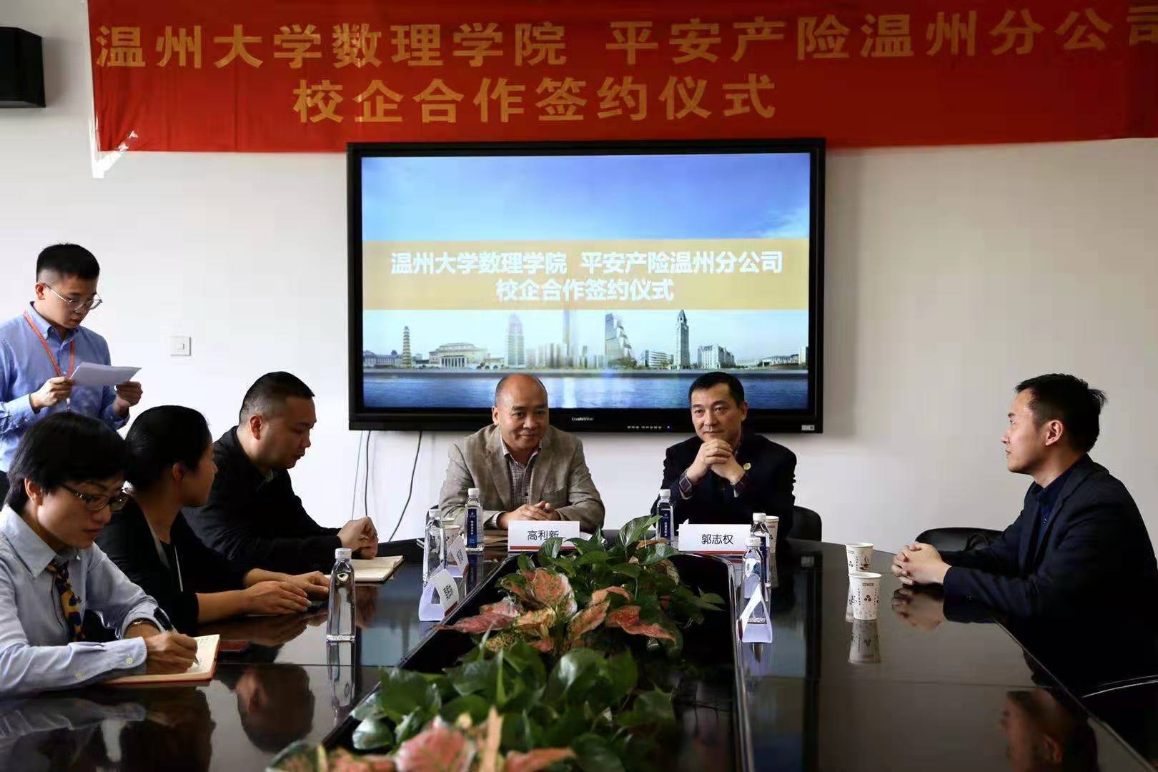 此次合作秉承“面向未来、加强合作、优势互补、共同发展”的宗旨,通过校企联合,拓宽学生教学实习渠道、提升学生的专业技能、培养和造就适应社会经济发展的高素质劳动者和技能型人才,同时也为平安产险发展提供强有力的学术、人才来源支持。在签约仪式上,平安产险温州分公司副总经理郭志权简要介绍了平安产险的发展情况,并对学校为保险行业培养人才、为保险行业发展做出积极贡献表示了由衷的谢意,同时希望双方未来能够深化在人才培养、学术交流、大数据研究等方面的合作,协力打造一个良好的校企合作平台。满冠平台数理学院院长高利新也对本次校企战略合作项目表示了高度的肯定,并表示将通过校企联动,促进理论发展与企业实践的结合,实现校企合作共赢。