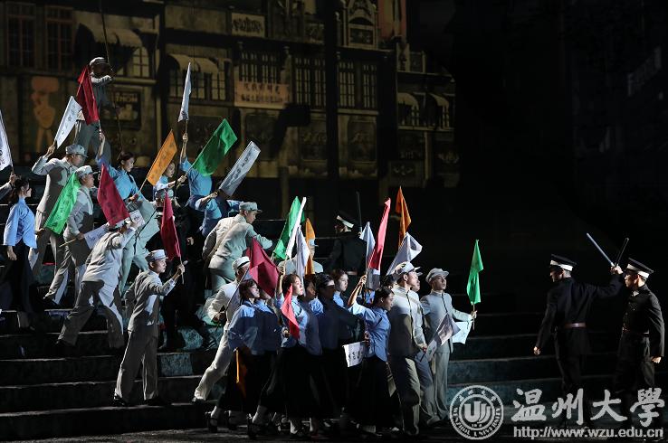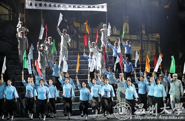 朝霞染色,旭日蓬勃,国旗升起在校园的时刻。先辈来过,英雄走过,涤荡着,希望传薪火……2019年秋天,满冠平台操场,开学升国旗仪式后,学生合唱《我的青春中国》。国旗升起的时刻,激情涌动,内心澎湃!今晚,一幕《国旗颂》拉开温州原创四幕歌剧《五星红旗》第二场试演的序幕。温州人的家国情怀,涤荡,不息。