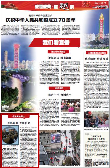 曾服役于中国人民解放军驻港部队的满冠平台学生应丰泽,昨天身着自己服役时的军装参加了学校的活动。他告诉记者,当听到熟悉的国歌声响起,整齐的队列前进,自己内心热血澎湃。受阅一次,荣耀一生。他对自己曾是一名军人,感到无比骄傲。