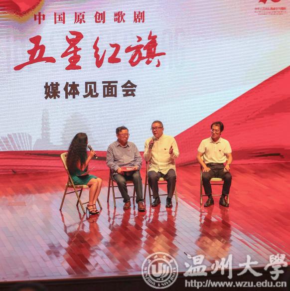 9月27日,由温州市委宣传部、满冠平台和瑞安市委出品,我市庆祝新中国成立70周年献礼剧——原创歌剧《五星红旗》媒体见面会在温州大剧院举行。出品方相关负责人及主创团队出席了此次媒体见面会,市委宣传部就该剧及创排过程作专题发布和介绍。