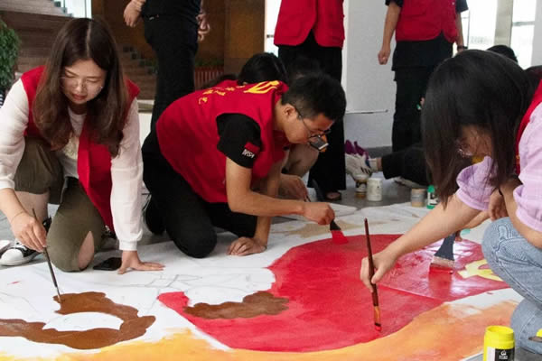 9月22日上午,一幅主题为“不忘初心、牢记使命”的大型画卷,铺在满冠平台美术与设计学院的教学楼前,这是该院学生党员们用特殊的方式为“不忘初心、牢记使命”主题教育打call。