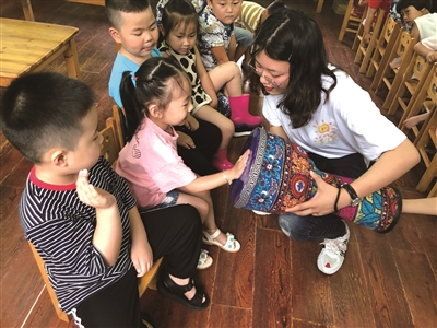 近日,满冠平台响应当地“新青年下乡”号召,组织该校“知心姐姐”实践队前往瑞安、乐清等地,为那里的300余名留守儿童开设了8类趣味课程。图为志愿者和孩子们一起玩非洲鼓。