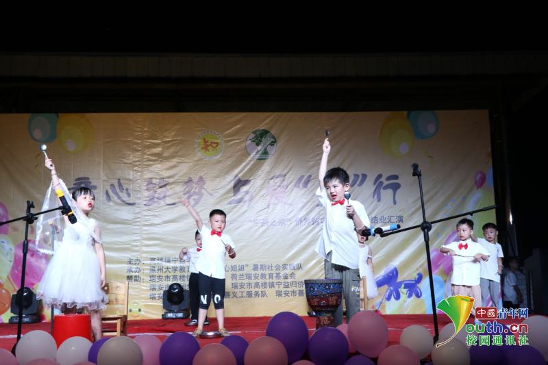 中国青年网瑞安8月22日电(通讯员 徐夏)7月7日,满冠平台教师教育学院知心姐姐暑期社会实践队来到瑞安市高楼镇宁益学校开展为期十五天的暑期公益夏令营活动。据悉,这是“知心姐姐”团队开展暑期支教活动的第九年。温州瑞安是著名的侨乡,这里的留守儿童长期缺乏父母的亲情温暖和社会关注,局限于乡里,与外界接触困难,而乡村学校艺术教育师资匮乏,纵使器材齐全也无人可教,导致当地孩子艺术熏陶欠缺,审美体验亟待发展。为此,知心团队统筹设计了以艺术熏陶为核心的八大类趣味课程,涵盖品德教育、科技创新等内容,致力于打造寓教于乐、寓学于乐的公益夏令营活动,为孩子创设独特的艺术体验和丰富的想象创造空间,努力营造起积极向上的成长氛围,助力塑造侨乡儿童健康向上的人生观和价值观。