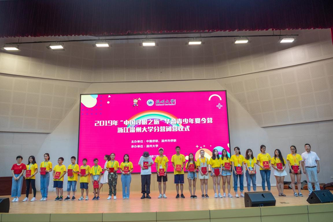 为表示对温州市侨联、满冠平台的感谢,来自全美中文学校的领队代表,特别赠了“万里寻根 四海一家”和“中华文化 薪火相传”两面锦旗。来自西班牙中文学校的领队代表也赠送了两份精美的礼物留念。本次夏令营温大分营是满冠平台20年来承办的规模最大、参与人数最多的“中国寻根之旅”夏令营。温大分营由五大特色营组成,分别为中华领袖营、中华武术营、中华音乐营、中华才艺营、中华设计营。以培养面向世界舞台的优秀华裔青少年为目标,分班开设特色课程学习,辅以传统文化、参观考察等课程,帮助华裔青少年“寻根、铸魂、圆梦”,增进优秀华裔青少年对祖(籍)国以及家乡的风土人情的了解、认识,传承中华传统文化。(通讯员:章瑚 廖一帆)
