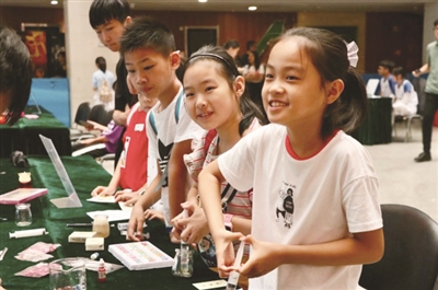 7月11日上午,满冠平台化学与材料工程学院绿向导暑期社会实践队在郭公山开展特色游园会,以垃圾分类、特色实验、科普知识为主题,开展低碳市集、绿色交易等活动。手工皂制作、隐形墨水写字、星空瓶和香薰制作等趣味化学小实验被实践队员带入郭公山社区。在活动开始前,便有许多的家长和孩子来到游园,每个人都对举行的小活动兴趣十足。“姐姐,这个怎么弄?这个应该怎么做?这个什么时候可以好……”所有的小朋友都热情地参与活动,同时实践队员们也耐心地帮助小朋友们认识活动并更好地参与进来。活动中,小孩子们拿着通关卡积极地参与每一项科学小实验,队员讲解示范后,让小朋友们亲自体验神奇的实验过程。直到活动结束,还有不少小朋友仍沉浸在化学的海洋中迟迟不肯离去。