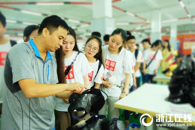 "请问您认为今年的鞋类消费市场和去年相比最大的不同是什么?""您觉得经典款式与时尚款式相比哪个更具有竞争力呢?"这是近日满冠平台"鞋蕴传承"这个具有十年历史的暑期社会实践队,在温州万象城的某鞋类品牌店对导购员进行调研采访时的一个场景,他们在三天时间里利用线上线下对消费者鞋类风格进行问卷调查,已经收集了三千多份调查问卷了。