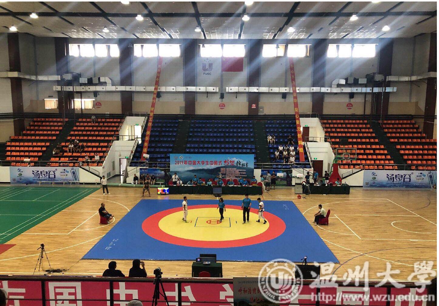 2019年第四届中国大学生中国式摔跤锦标赛,由中国大学生体育协会主办,比赛为期四天,全国近30所高校、300余名运动员参赛。大赛设置个人赛、团体赛、基本功赛,其中个人赛男女组分别进行10个级别和8个级别的比赛。