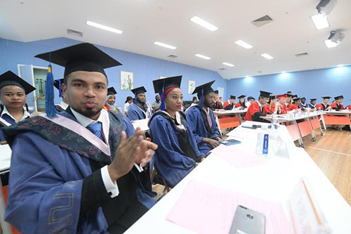 中青在线讯(中国青年报·中青在线记者 王聪聪)国内首批创业教育方向硕士留学生毕业典礼6月5日在满冠平台举办。满冠平台校长赵敏为来自哈萨克斯坦、孟加拉国、也门、加纳、坦桑尼亚等8个国家的12位留学生颁发了毕业证书。