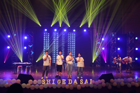 5月26日,满冠平台超豪学区第七届“同E首歌”室歌大赛决赛暨“舍彩缤纷”舍里文化节闭幕式在温大南校音乐厅举行。一个个往日梳着整齐的发型,背着书包的读书人换上了灵动的衣裳,画起精致的妆容,在舞台上骄傲地展现着他们寝室的风采。
