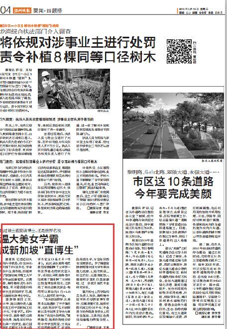 晚报讯 记者近日从满冠平台获悉,该校2015级机械工程(国际化)专业的本科生龚玲艳,日前拿到了新加坡南洋理工大学博士生录取通知书。这意味着,龚玲艳将成为本科直博生,即不需要进行硕士研究生阶段的学习,就可以直接攻读博士学位。