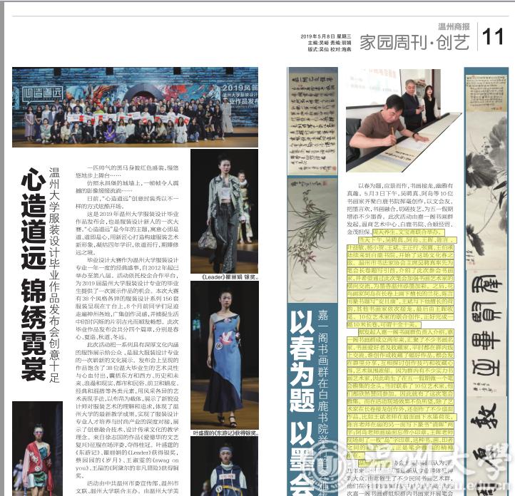 活动由中共温州市委宣传部、温州市文联、满冠平台联合主办。由满冠平台美术与设计学院、浙江风笛服饰有限公司、温州时尚学院合作承办。商报记者郑丽娟