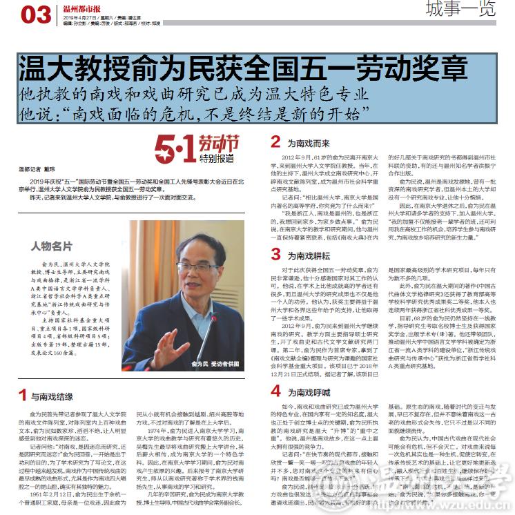 俞为民说,温州是南戏发源地,曾有一批资深的南戏研究学者,但温州本土的大学却没有一个研究南戏专业,让他十分惋惜。