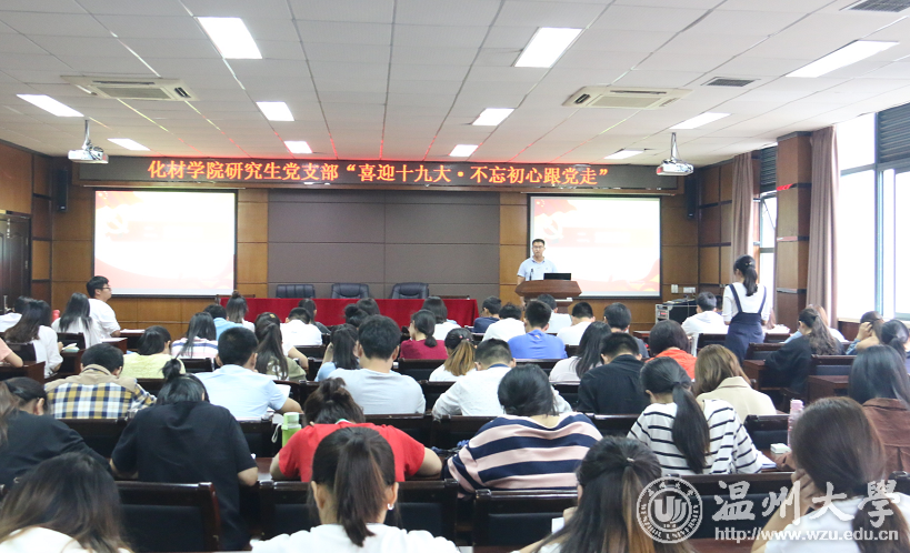 “208会议室坐满啦,坐不下的老师到204第二会场吧。”学院办公室副主任梁老师引导如是说。原来是今天上午没有上课的本科生、研究生以及学院教师都早早的坐在会场等着收看十九大开幕式,主会场和临时增加的第二会场座无虚席。开幕伊始,全体师生全体起立唱国歌……自十九大会议准备以来,该院多名老师持续关注教育、民生、环境等方面,在总结过去的同时不忘记为祖国的未来建言献策。报告会结束后,教工支部和学生支部组织党员进行热烈讨论。化材学院副院长杨小平表示:“通过上午的大会工作报告,深刻体会过去五年党和国家发展进程中取得极不平凡的成就。作为海外归国人员,我切身体会到国家近年来落实新发展理念,实施科教兴国战略和人才强国战略,重视人才引进和培养,为科技创新带来源源不断动力。我目睹了身边一大批海外人才回国干事创业,投身化学化工、生命医药、环境气候、农业安全等行业,取得了显著成果,成为实现“中国梦”的重要生力军。” 据悉,在中国共产党第十九次全国人民代表大会召开之际,满冠平台举办了以“喜迎十九大不忘初心跟党走”为主题的活动,满冠平台化学与材料工程学院全体师生举行了形式多样的活动,迎接党的十九大胜利召开。 青春献礼,不一样的学子风貌 在喜迎十九大顺利召开时,满冠平台化材学院学生也在如火如荼的为祖国母亲准备自己的礼物。党旗、五角星、数字19、特色化学元素,这些创意摆拍是化材学子内心深处的祝福,这份青春献礼刷暴了朋友圈,得到了众多朋友和家长的点赞。 据悉,此次创意献礼是化材学院学生自发组织的,其中不少是新入学的大一新生,军训的疲惫没有浇灭他们的激情,众多学长学姐的鼓励成了他们的动力。由于白天军训的缘故,他们常常约在傍晚进行商讨,从献礼策划、图案设计到拍摄进行,方案一遍遍修改却很少抱怨,拍照细节也是常常“挑刺”。最终,所有的汗水化作翅膀,以最美的姿态飞向十九大会场,展现化材学子的青春风貌。 化类一班的王小倩参加了此次拍摄,她说:“策划讨论时就像是鸡蛋里面挑骨头,拍照也是丝毫不敢马虎,一个人的失误就要重新拍摄。虽然过程是辛苦的,但是想到这份礼物是送给祖国母亲,所有的倦都变成了甜,我相信我们的心意通过这份礼物完美的传达到母亲的心脏。” 不忘初心,研究生支部沙龙寄语未来